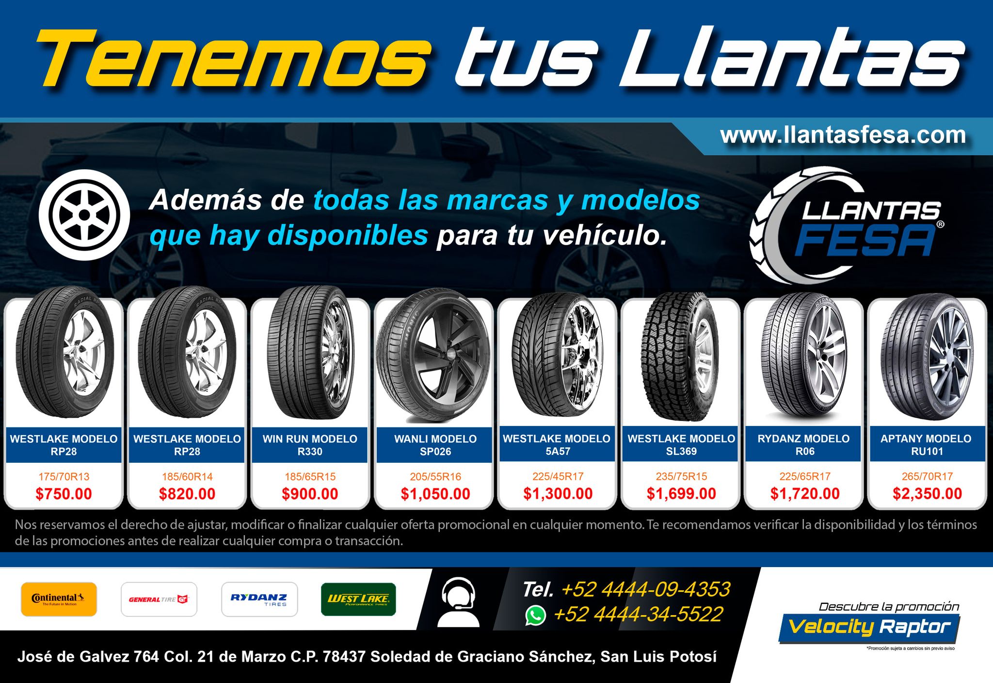 💰 Ahorro Increíble: La promoción VelociRaptor te ofrece la oportunidad de obtener tus llantas favoritas a precios increíbles. No pierdas la oportunidad de ahorrar mientras mejoras tu vehículo.